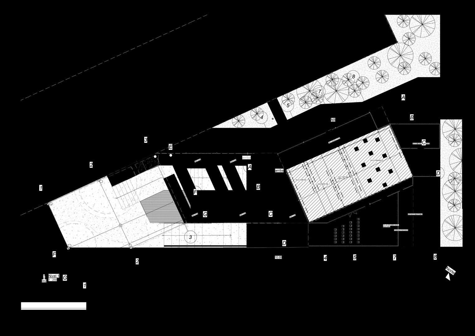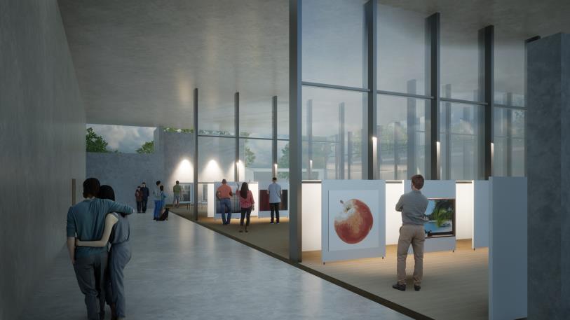 Se planteo un volumen en barra plegado en dirección al norte, buscando sectorizar en tres zonas los espacios interiores, incorporando cambio de nivel desde el acceso urbano hasta la planta que conecta con la estación del metro. Generando un recorrido a diferentes alturas y con una época del país distinta