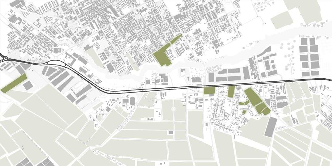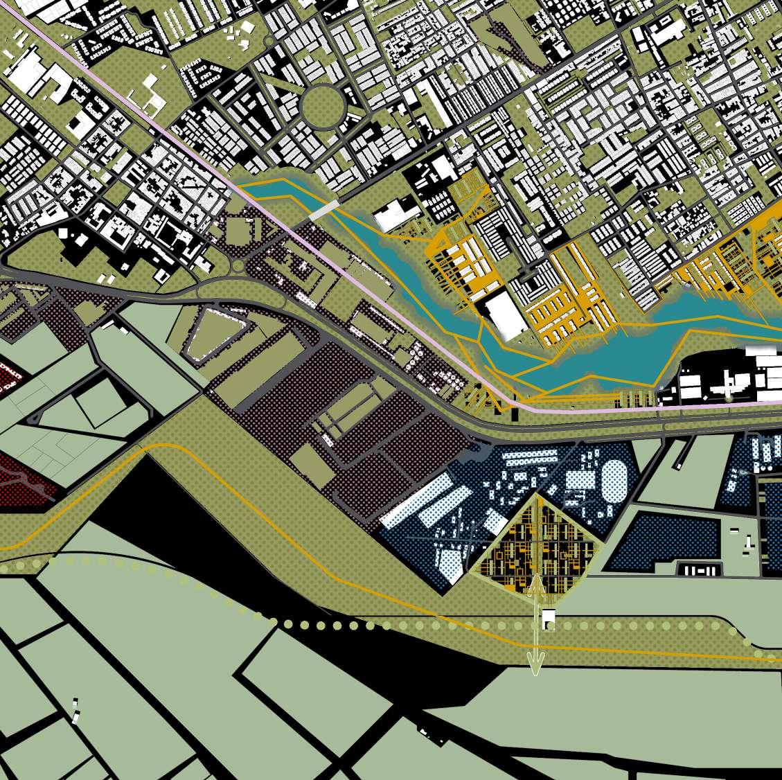 Se determinan espacios verdes que acompañan a los usos complementarios pero que a su vez crean un recorrido y una red de vegetación planeada para poten ciar la biodiversidad y gracias a su continuidad brindar protección a especies que requieran de este recorrido