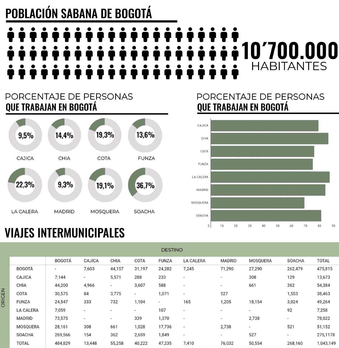 Al analizar la zona de estudio, Funza-Mos quera, se identificaron tres fenómenos que actualmente están cambiando el carácter y las dinámicas del territorio, el primero, llamado “enclaves satelital es multiescalares”, hace referencia a la llegada de ciudadelas (archipiélagos) sobre la periferia del casco urbano de los municipios, principalmente como re spuesta a las migraciones poblacionales provenientes de Bogotá, estos enclaves responden a las características y dinámi cas de sus pobladores, siendo la pendu laridad la más importante y la que más impacto genera sobre el territorio, con solidándolo como ciudad dormitorio, y aumentando la intensidad de los flujos sobre los principales vectores de movil idad en el sector sobrepasando la carga que estos corredores pueden soportar.