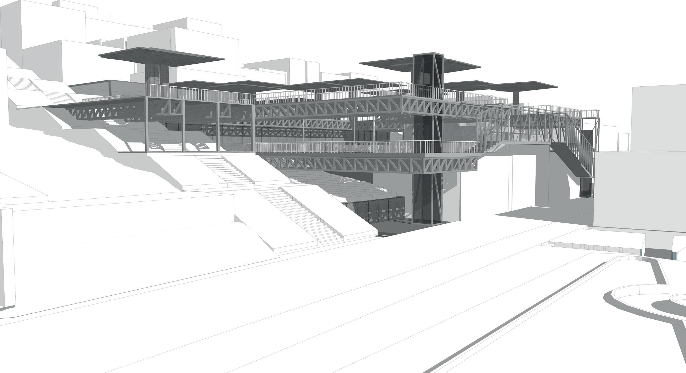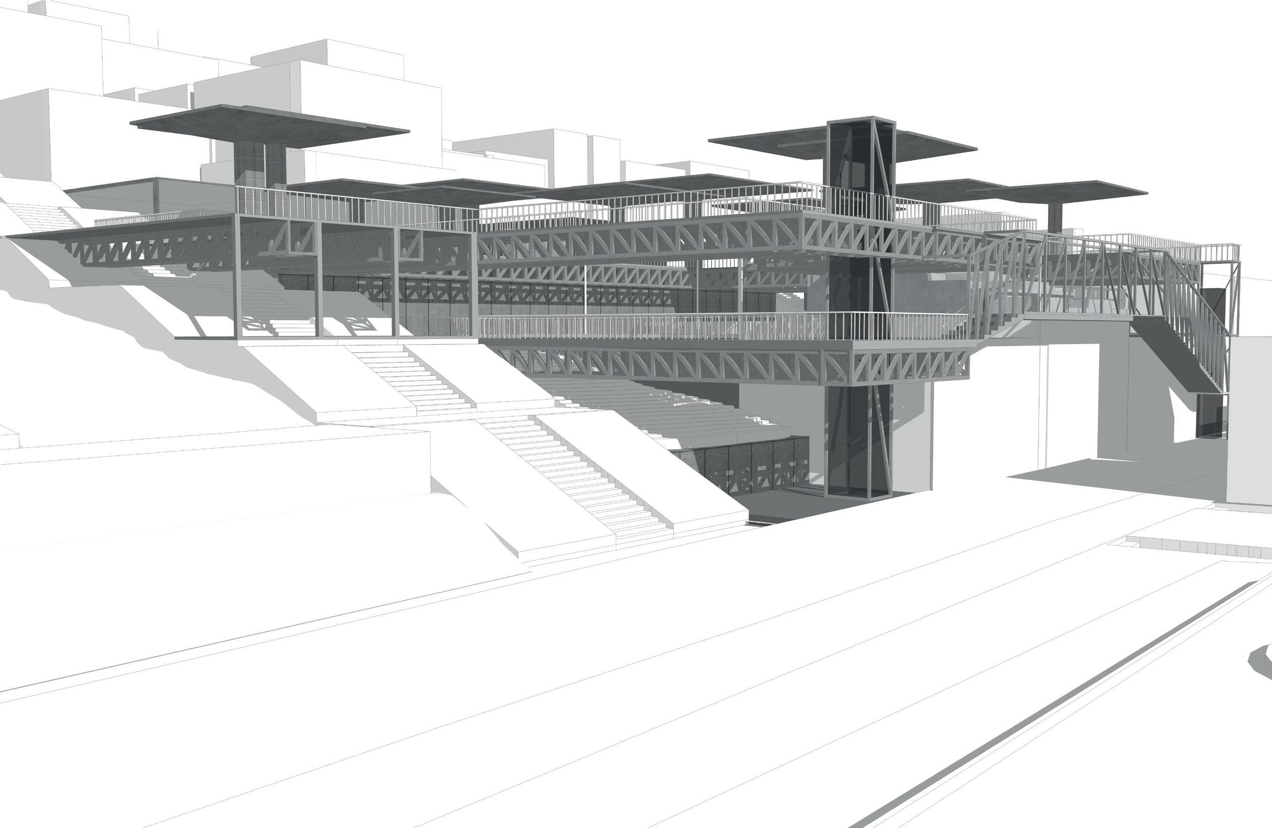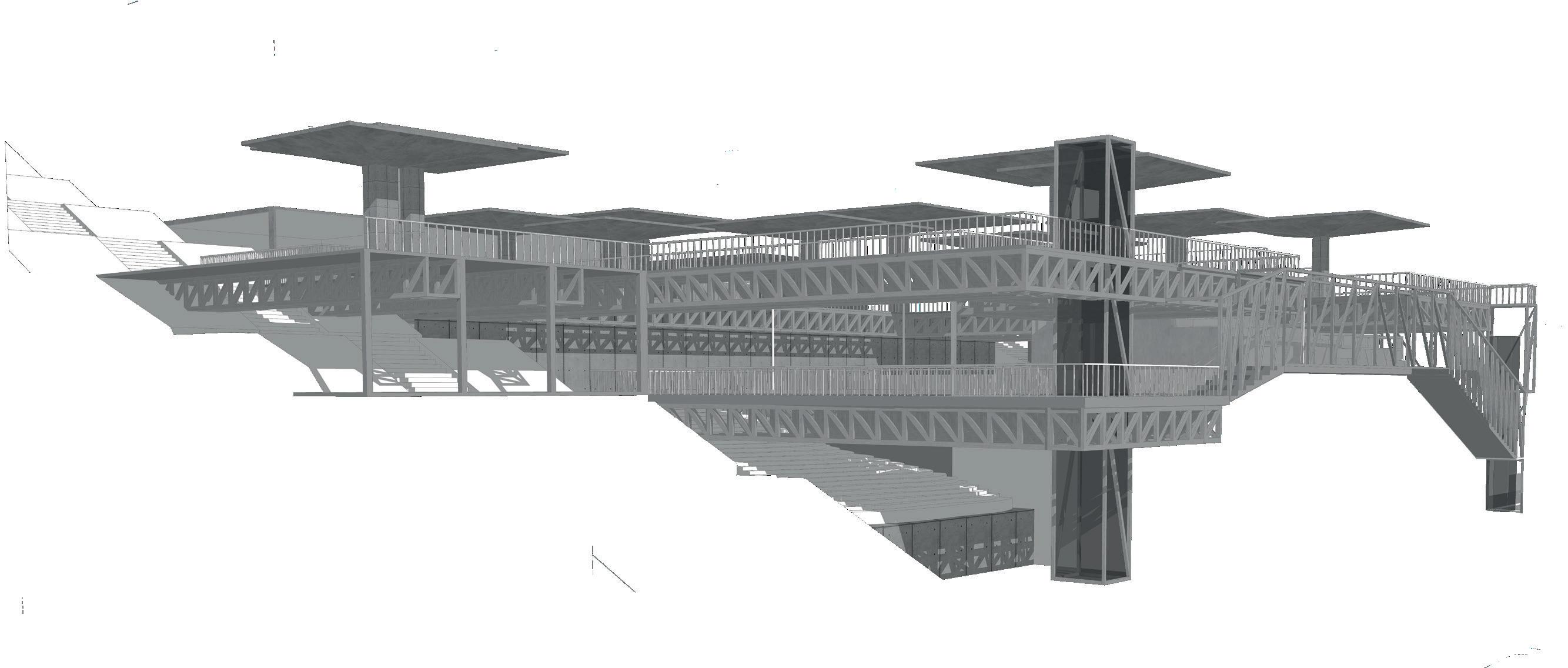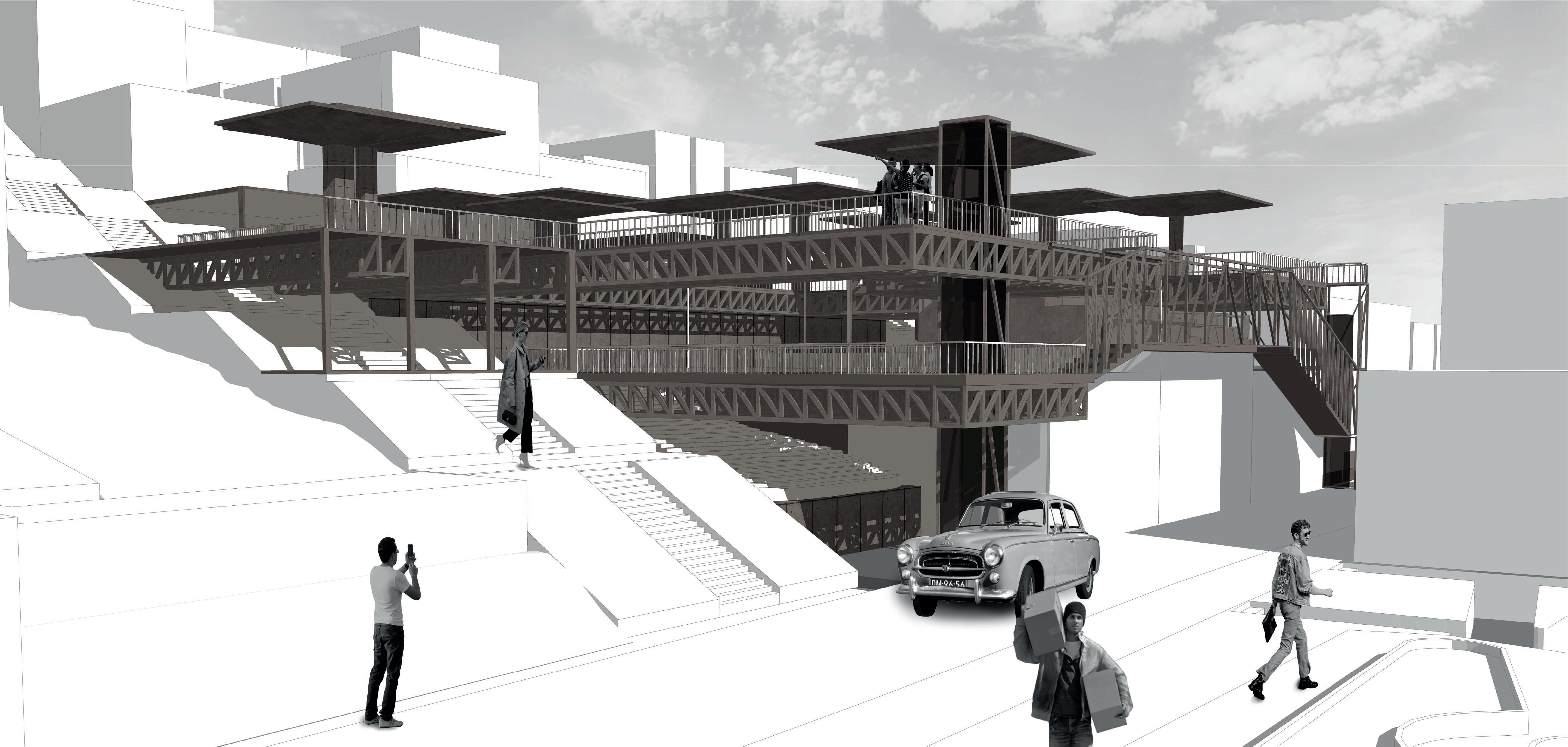 La finalidad del proyecto fue la reactivación del carácter urbano en el barrio El dorado, por lo cual diseñe un edificio icónico que resalte por su materialidad pero que juego con la morfología y topografía del lugar para generar simbiosis entre los dos.