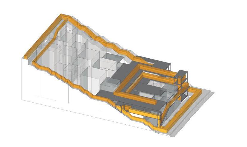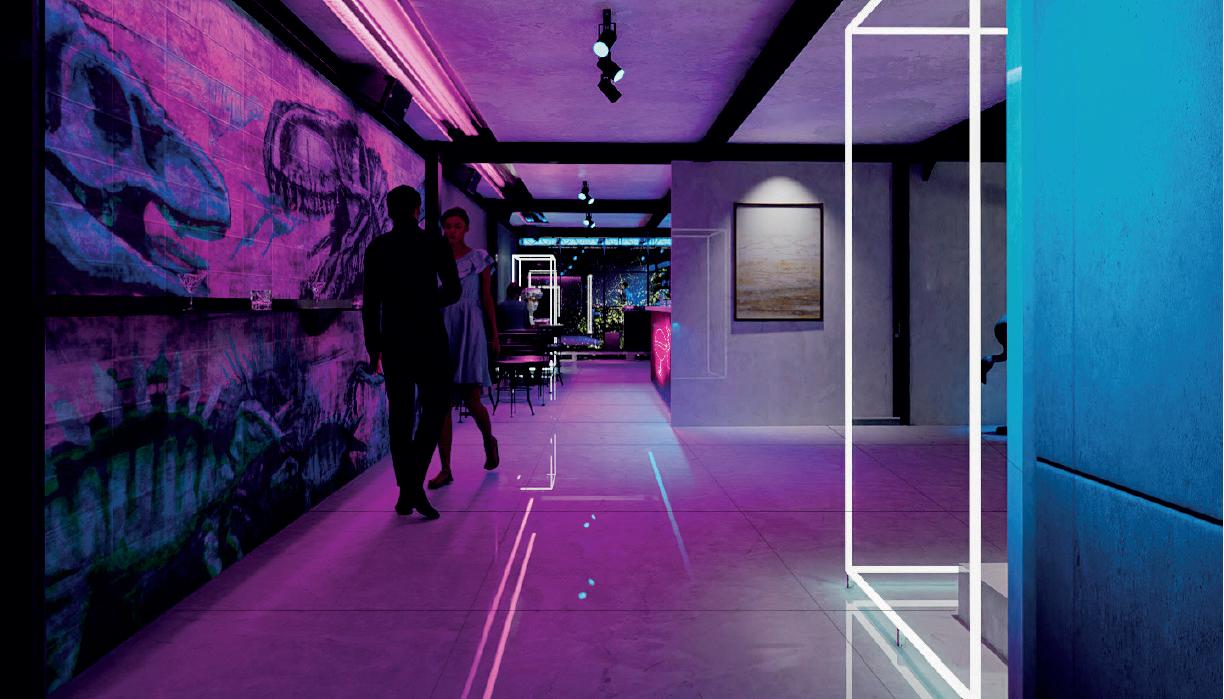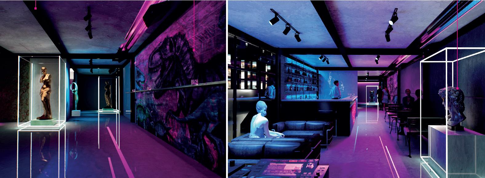 Se genera una dualidad entre dos programas opuestos, el espacio sacro (Galería) y el espacio Urbano(Bar)