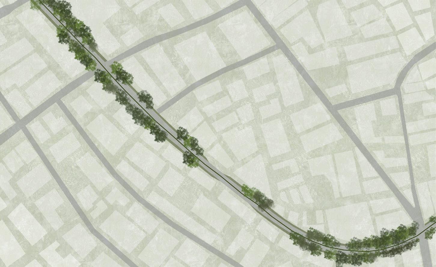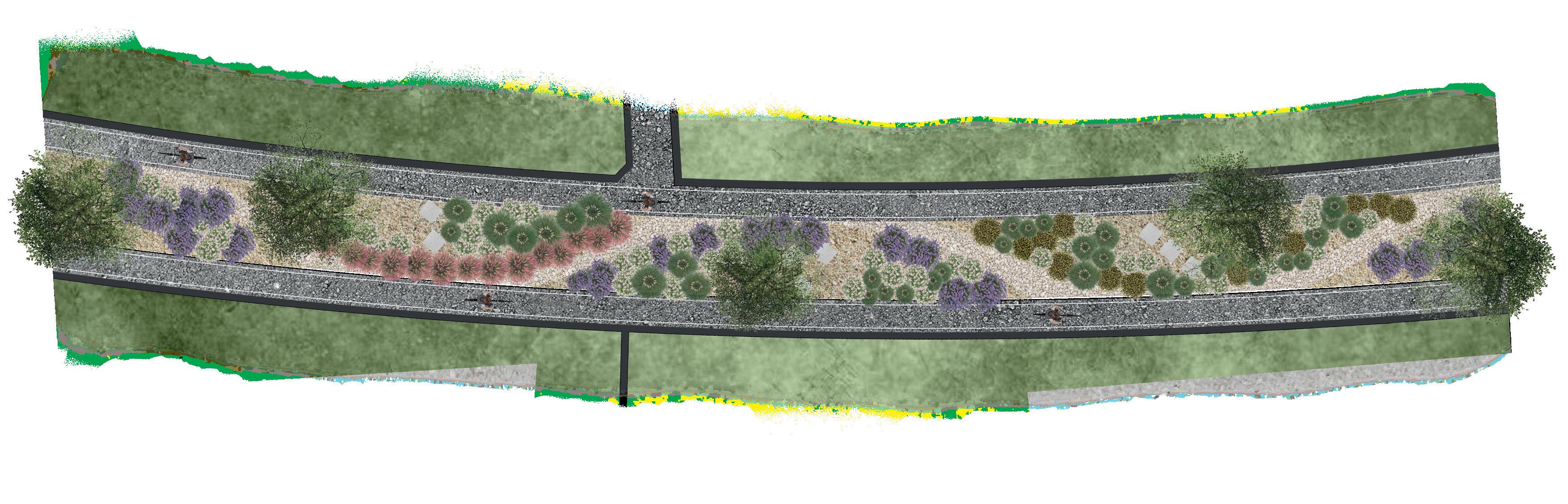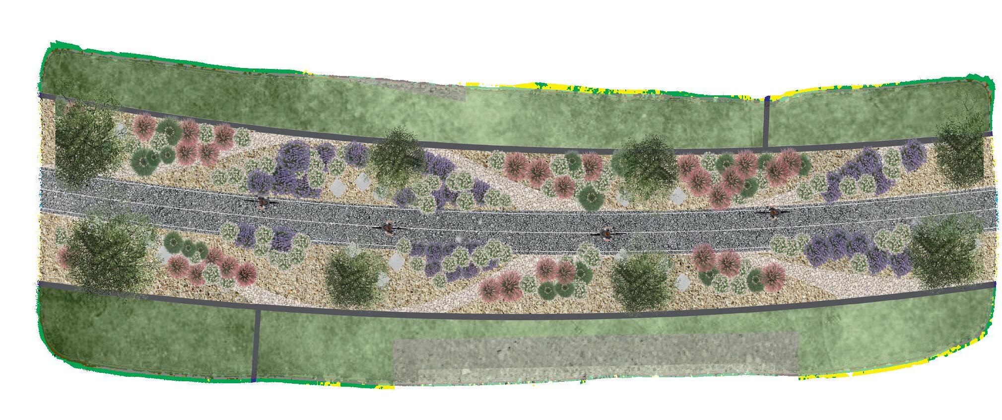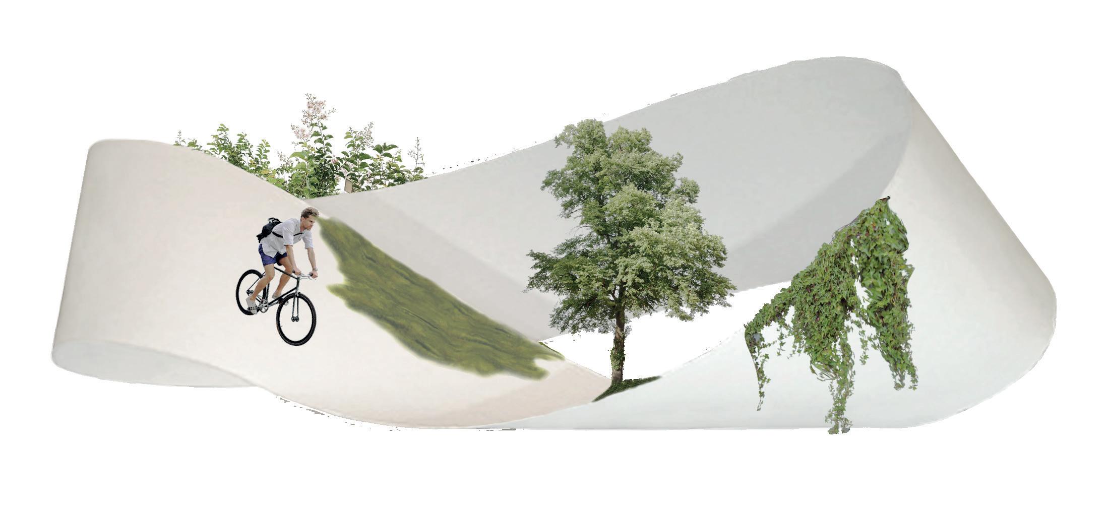 Se utilizan diferentes bifurciones a lo largo de la ciclovía para generar diferentes percepciones visuales y sensoriales aprovechando que no mantiene una anchura constante.