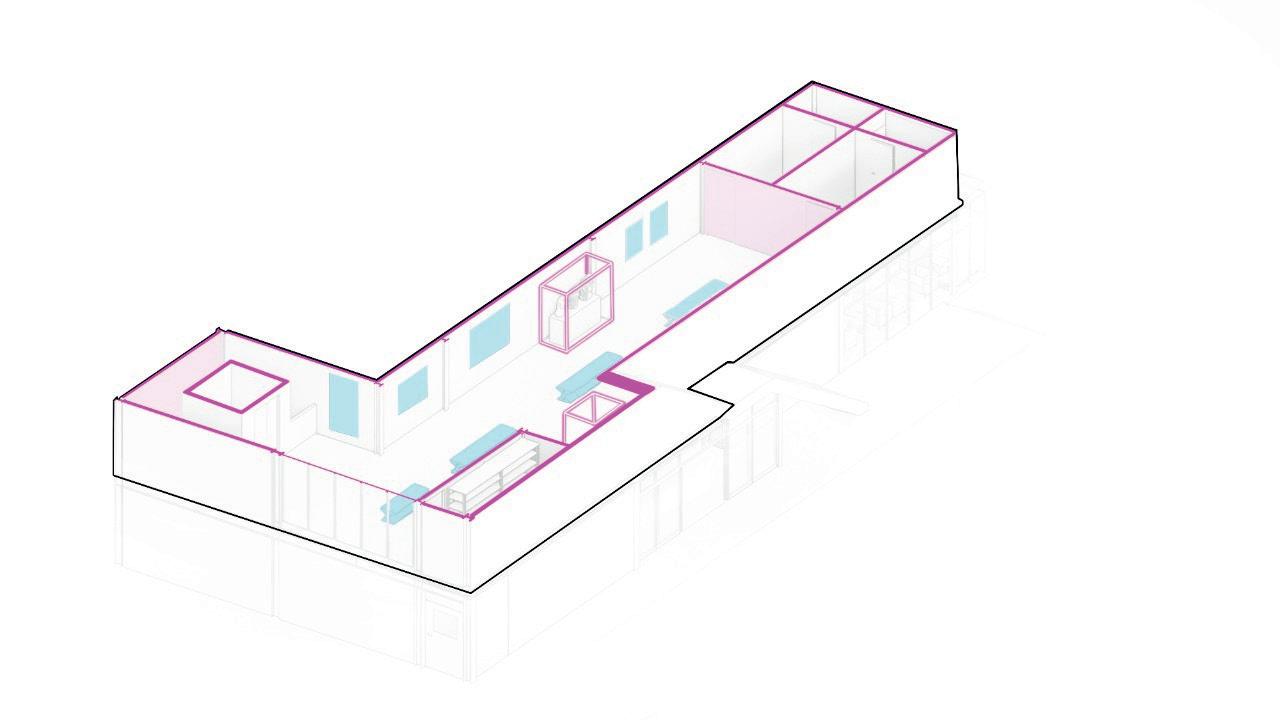 Los Programas son separados por plantas, en la planta baja se mantiene el Bar y parte de exposición y en la planta alta está dispuesta para exposición y administración de la galería.