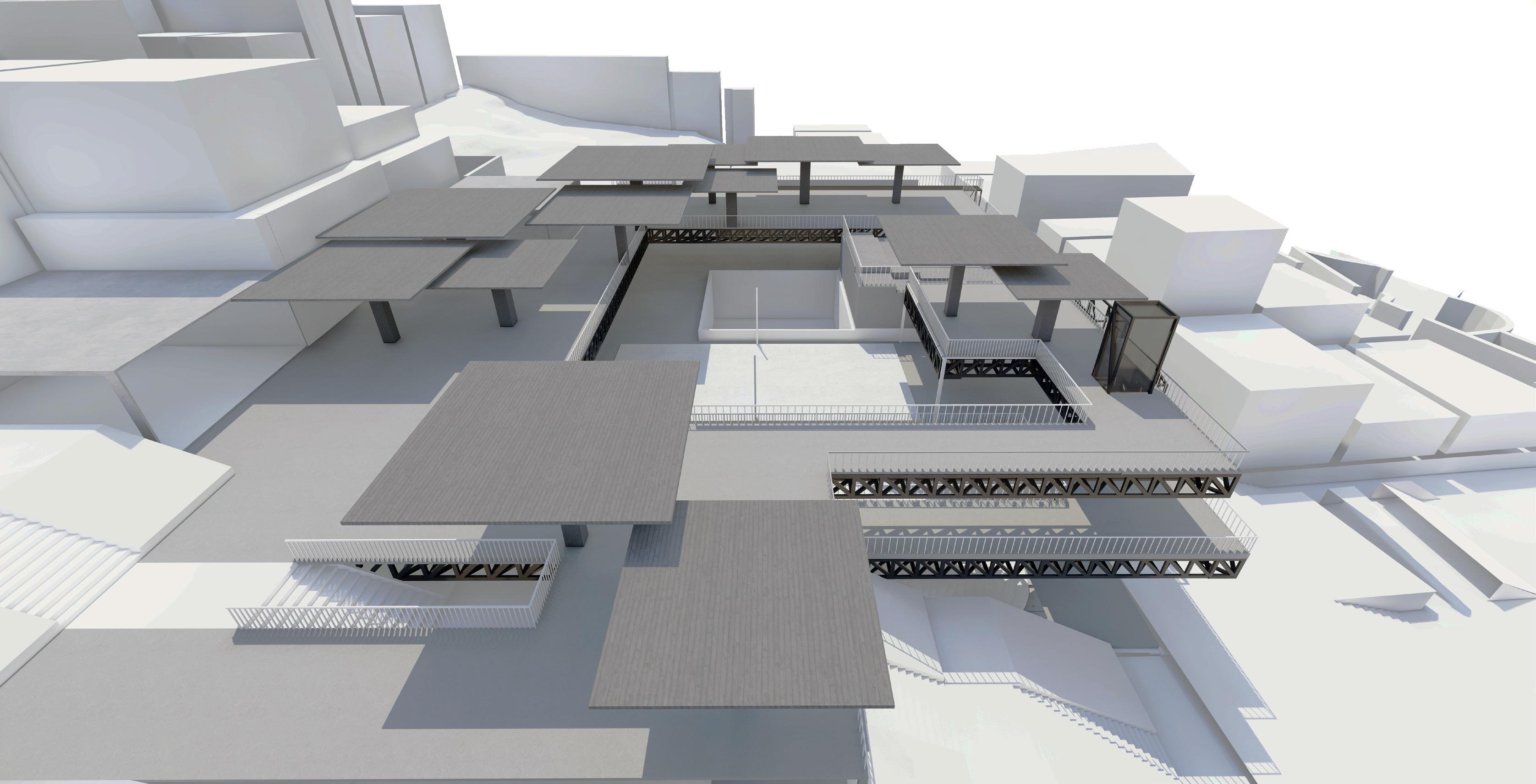 PATIO DE COMIDAS ZONA COMERCIAL ZONA DE EJERCICIO ASCENSOR ESPACIO LUDICO BIBLIOTECA