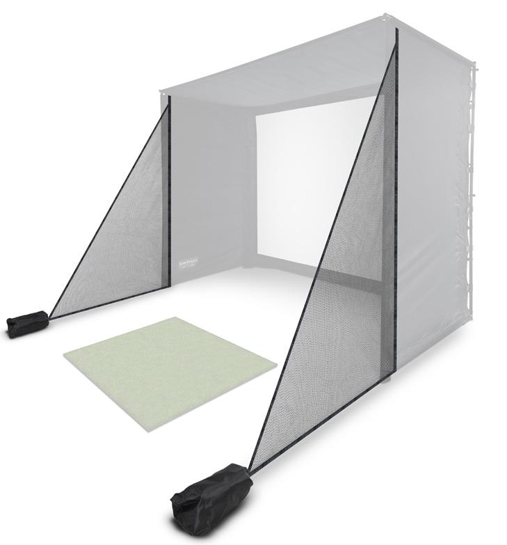 The netting includes weighted bags for full extension and Velcro strips for seamless attachment to your SimSpace enclosure. Its sleek black finish blends perfectly with the enclosure for a polished, professional look.