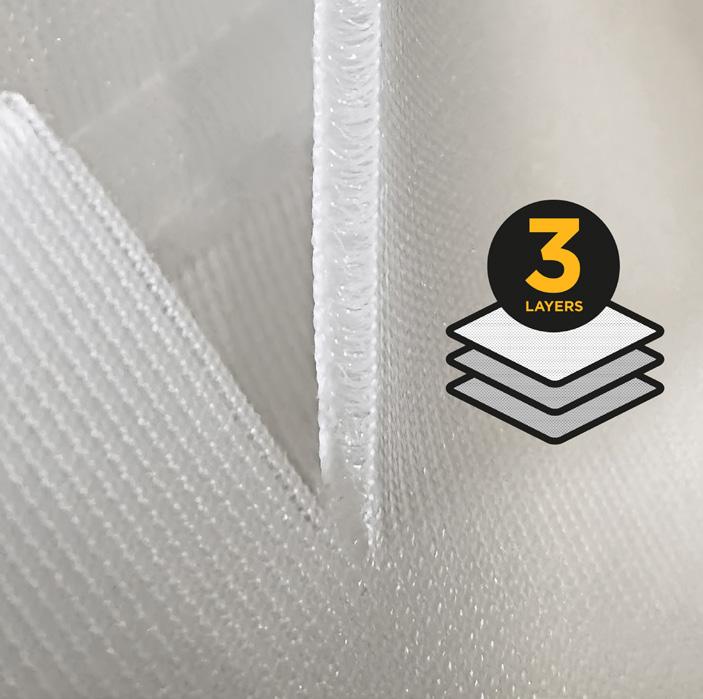 Perfect for heavy home use with its dual-layer durability. Experience top-notch 4K image quality from both sides of the screen. This duallayer screen extends its lifespan by allowing usage from either side. Crafted from a smooth, tight-weave polyester blend, it provides sharp images and increased durability.