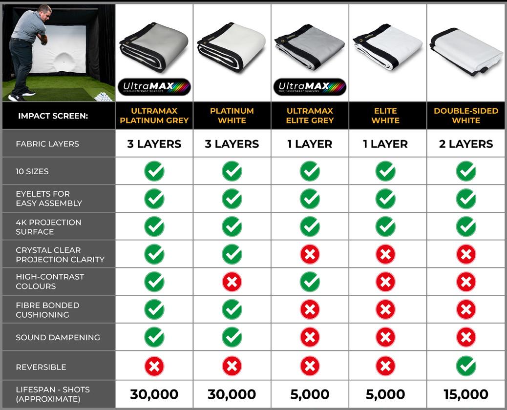 Use the chart below to help you choose the perfect impact screen for your setup needs... ELITE WHITE