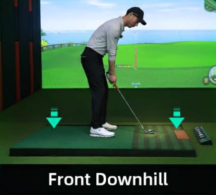 Terrain data is transmitted via RS232, adjusting the slope of the platform in real-time to enhance the challenge and create an immersive golf experience.