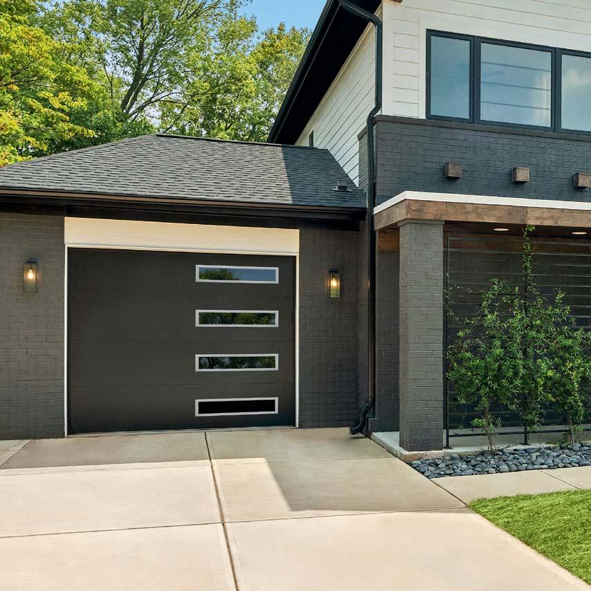 CONTEMPORARY ALUMINUM garage doors combine aluminum and glass to create a sleek, modern look. Many glass and panel combinations are available for varying degrees of privacy.