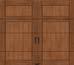 Insulated carriage house garage doors with faux wood-look overlays on a steel base.