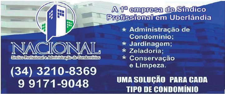 A Nacional Síndico Profissional e Administração de Condomínios disponibiliza síndico profissional qualificado e preparado para gerir o condom ínio: ele é, na v erdade, um administrador do condomínio, que conhece desde a legislação m ais recente sobr e condom ínios, com o tam bém é capaz de ajudar a m ediar conf litos O síndico profissional planeja, estuda e busca m elhorias para a gestão do condom ínio, o que lev a, consequentem ente, à tranquilidade dos condôminos
