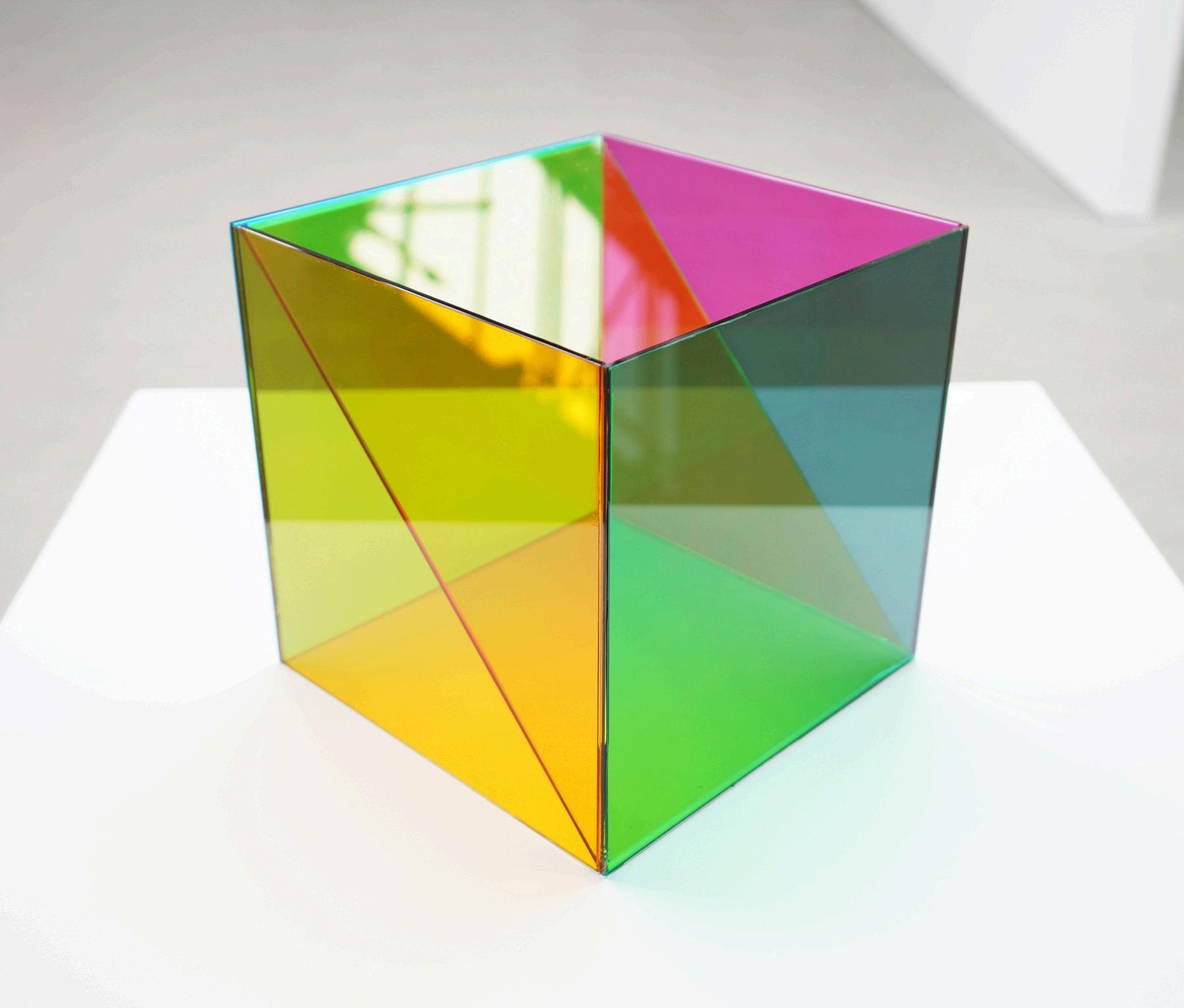 With intersecting planes of tinted glass, Luftwerk’s Color Space sculptures project a multitude of color overlaps and mixes A subtle tension between understanding and chance pervade the objects Light and space become concurrent variables, calibrated to one another, in the static object Though the cubes are diagrammatic in essence, there is an air of the indescribable as one ’ s positioning transforms the piece with every movement. Perception as a subjective experience often overrides our understanding of the mechanics of color, light, and space in the most beautiful way, and at their core, the three Color Space pieces express this sublimation to experience.