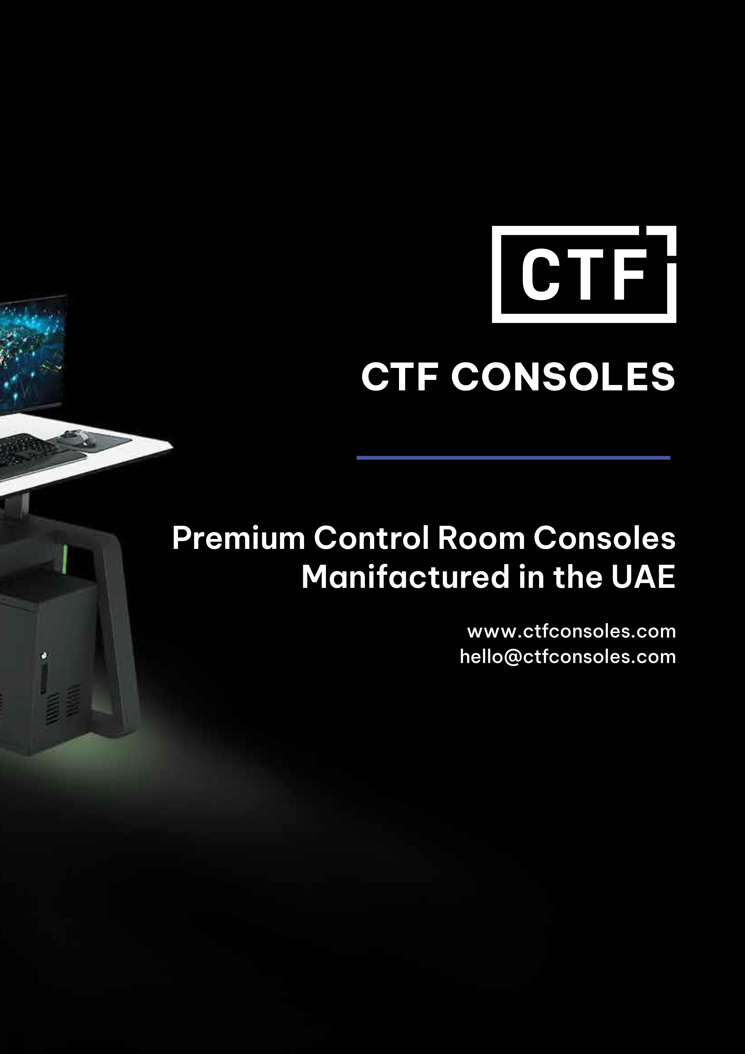Connected Technical Furniture (CTF) designs, manufactures and installs furniture for control rooms, crisis rooms, meeting rooms and conference rooms. Crafted in a state-of-the-art factory in Dubai, UAE, CTF ensures top-quality engineering and manufacturing in the GCC. Offering hands-on service throughout the project lifecycle, CTF tailors its solutions to meet specific client needs. Consoles can be delivered within two weeks in the UAE and three weeks across the GCC — an impressive turnaround compared to the usual 16+ week delays many integrators and end users face. Designed to meet ISO 11064-4 2013 ergonomics standards, CTF’s consoles offer a variety of add-on features and customisation options. Accessories like PDUs, cable management, monitor brackets and wireless charging pads are included in CTF’s product offering, along with free delivery and installation. Every console also comes with a lifetime warranty on the metal body, supported by dedicated teams and facilities in the UAE and KSA for hassle-free operations. ctfconsoles.com