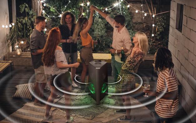 Aumenta el volumen de tu fiesta con un sonido bidireccional y una alta potencia de salida de 300 vatios.