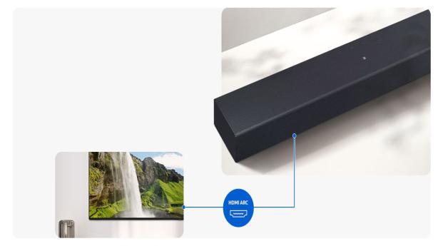 Gracias al puerto HDMI ARC de la barra de sonido, puedes conectarla a un dispositivo externo y disfrutar de contenido de audio intenso y vibrante sin perder calidad .
