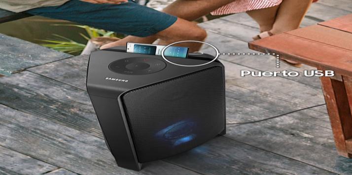 Gracias al puerto USB integrado, puedes conectar tu dispositivo externo y reproducir la música que quieras para disfrutar con tus amigos.