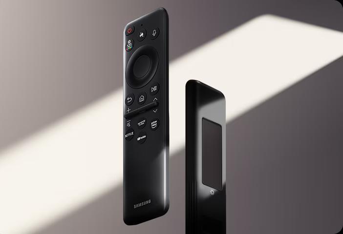 Gracias al panel solar en la parte posterior, nuestro control remoto SolarCell Remote se carga con luz, sin necesidad de usar baterías desechables. Y con funciones inteligentes como un micrófono y un asistente de voz incorporados, este control remoto es innovador en más de una forma.