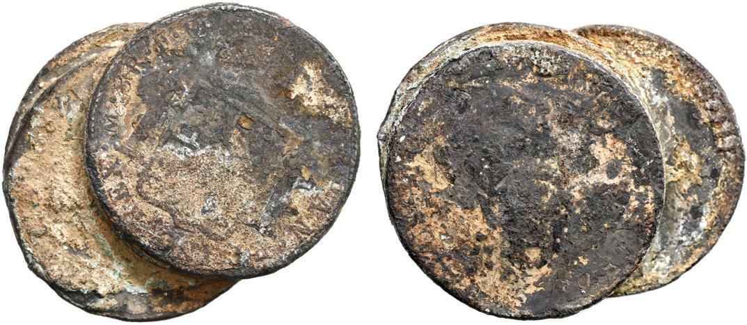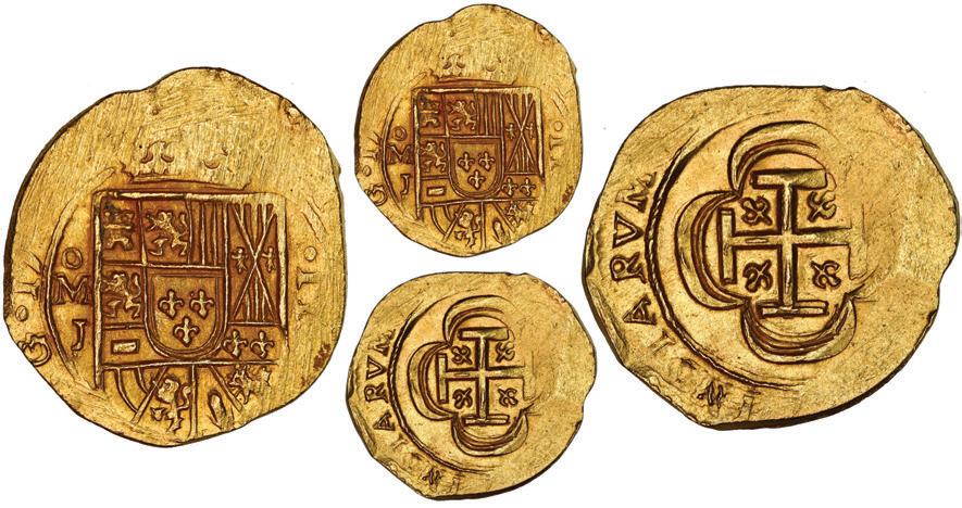 Our popular Shipwreck Coins section features an assortment of high grade Atocha coins (lots 94-183) - this year marks the 400th anniversary of its sinking off the Key West. Many of these also come with vintage Mel Fisher certificates of interest to the salvage history col lector. Notable coins include a very rare French gold louis d’or 1723-Z from the Chameau (1725) (lot 279), a Santiago gold bust 8 escudos 1751 J from the Luz (1752) graded NGC MS 62 (lot 298), and a clump of seven US Seated Liberty silver half dollars from the SS Republic (1865) - the first time we have offered a clump from this wreck (lot 316).