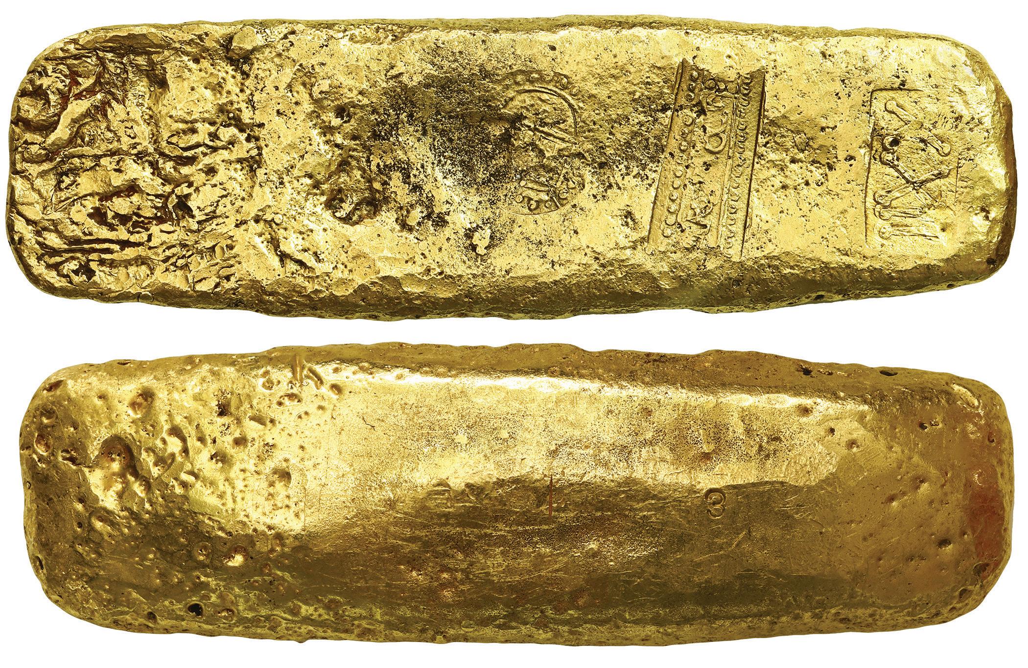 A wide variety of Shipwreck Ingots includes two hefty gold “finger” bars from the Atocha (1622) from the J.P. Silberman Estate (lots 71 and 72), a fascinating 28.75 kilogram silver ingot from the Maravillas (1656) with original uncleaned coral encrustation (lot 79), and a rectangular gold bar weighing 915 grams from the Corrigan’s wreck site of the 1715 Fleet with ties to Florida salvage history (lot 73). In addition, we have three lustrous gold disk ingots recovered from the Luz (1752) (lots 74-76) whose origins are analyzed by Daniel Frank Sedwick in this catalog’s feature article.
