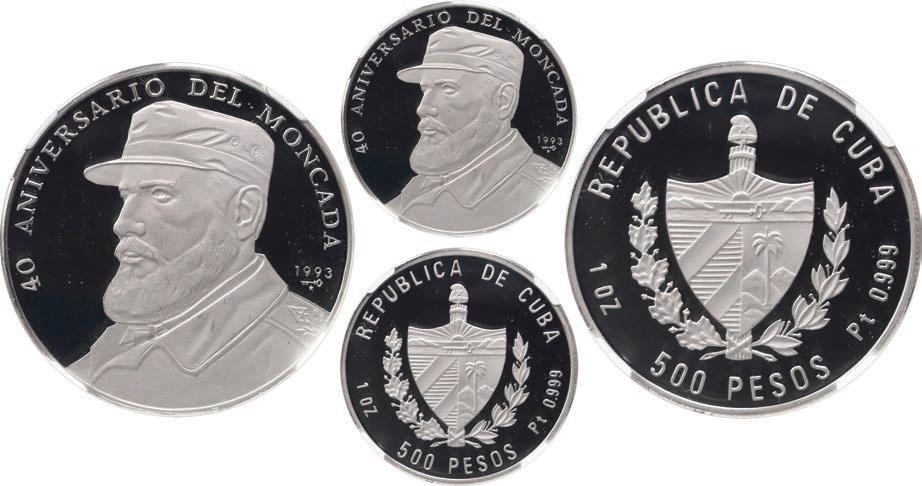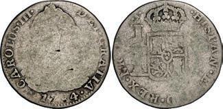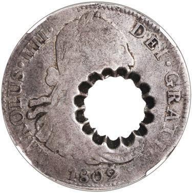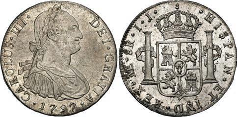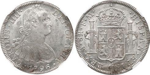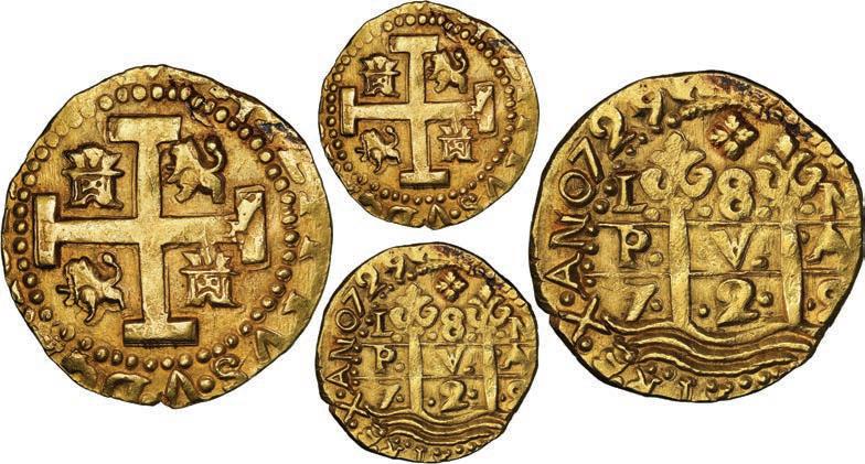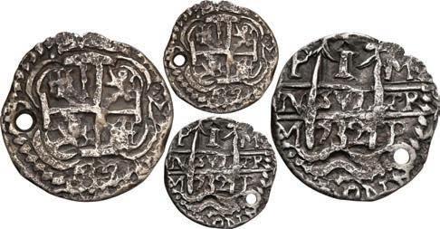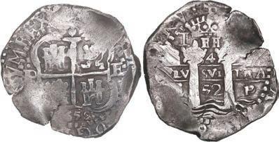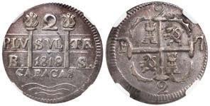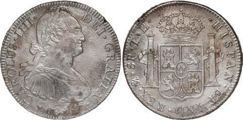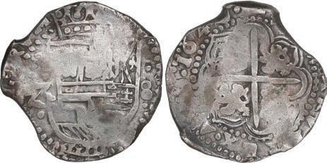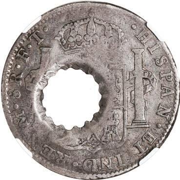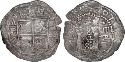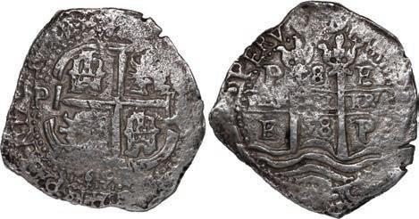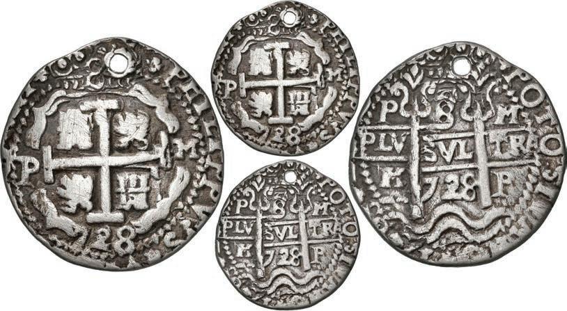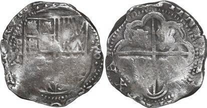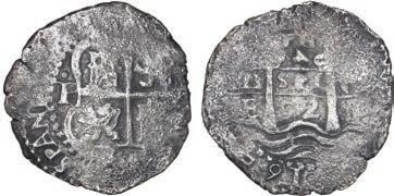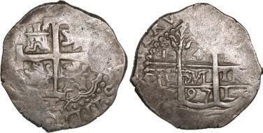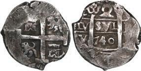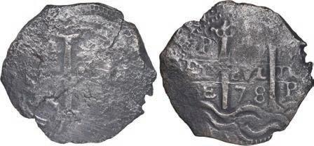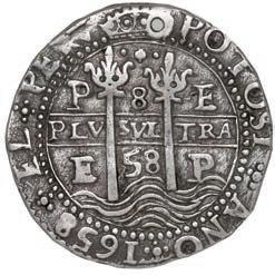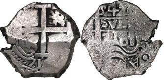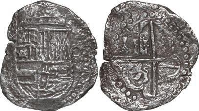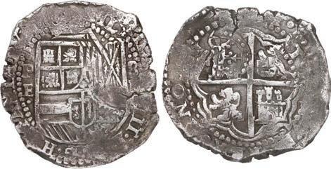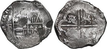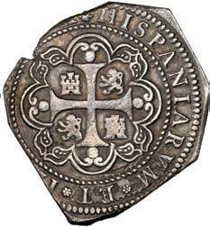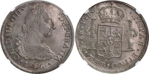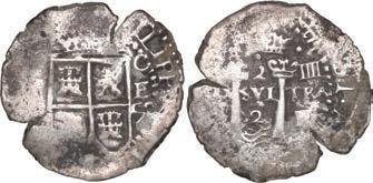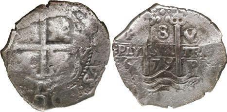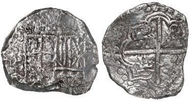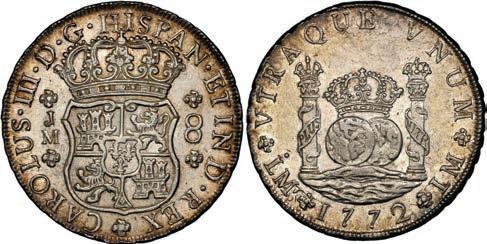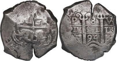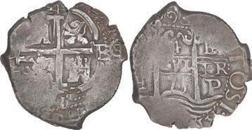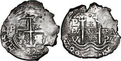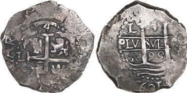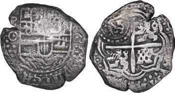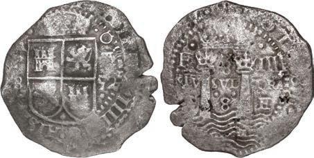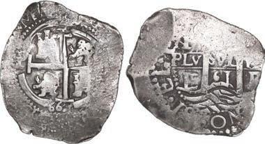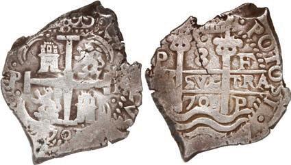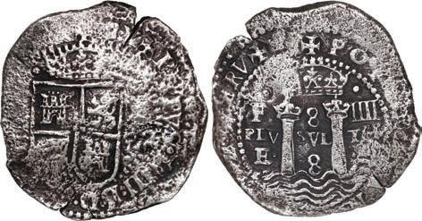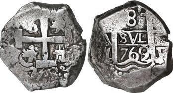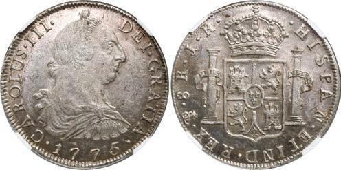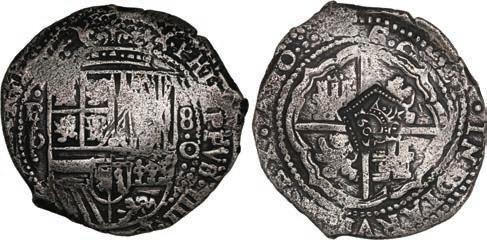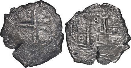 In our Gold Cobs section you will find such trophies as a Seville, Spain, 1681/0/79 S gold cob 8 escudos graded NGC MS 61 (Lot 23) and the finest known Seville, Spain, 1659 (R) gold cob 8 escudos graded NGC MS 63 (Lot 17). Also note a lovely Lima, Peru, 1748 R gold cob 8 escudos graded NGC MS 63 (Lot 37).