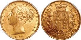 5. SPAIN, Seville, gold 1 escudo, Charles-Joanna, assayer Gothic D to left, mintmark S to right, NGC MS 61. Cal-199; Fr-153. 3.30 grams. Choice full interiors including mintmark and assayer, nearly full crown and much legend, tinge of luster. NGC #6692937-004. Estimate: $2,000-$3,000.