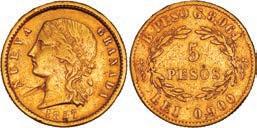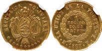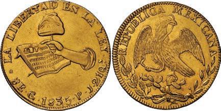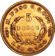 2044. PERU, Lima, gold 8 escudos, 1863 YB. KM-183; Fr-68. 27.00 grams. Lustrous AU with heavy adjustment marks on both sides, some hairlines in the fields. Estimate: $2,000-$3,000.