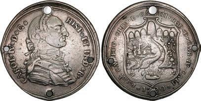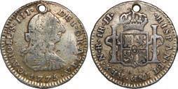 2050. SPAIN, Madrid, gold bust ½ escudo, Charles III, 1776 PJ. Cal-1264; KM-415.1; Fr-290. 1.75 grams. VF with a few small marks around the bust, popular date with U.S. collectors. Estimate: $350-$500. 2051. SPAIN, Madrid, gold bust ½ escudo, Charles III, 1776 PJ. Cal-1264; KM-415.1; Fr-290. 1.76 grams. VF/XF, a couple of hairlines but nothing major, light sedimentation on the reverse, popular date for U.S. collectors. Estimate: $300-$450.
