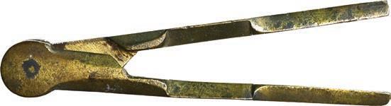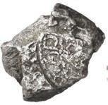 2094. Small but ornate brass cross with white encrustation, ex-San Gerónimo (1751). 4 grams. 1½” x 1½”. Totally intact except for loop at top and two odd uprights at lateral ends, with all the detail on the front attractively contrasted by a veneer of bright white coral, the back gray but also well detailed. From the San Gerónimo (1751), pedigreed to Sedwick Auction 12, with original lot-tag 1824 and Frank and Daniel Sedwick certificate from 1995. Estimate: $125-$200.