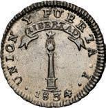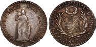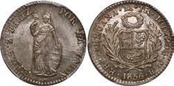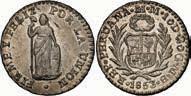 2039. PERU, Lima, ½ real, 1846 MB, ex-O’Brien. KM-144.7. 1.66 grams. Lightly toned AU-UNC, interesting strike with parts of legends weak or re-punched. Pedigreed to the John O’Brien Collection, with his tag . Estimate: $150-$225.