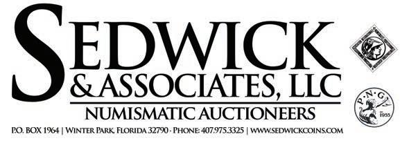 Please consider the convenience of sitting at home on your computer and bidding LIVE online at NO extra cost! www.auction.sedwickcoins.com Sedwick & Associates, LLC, licensed Florida auction company #AB2592