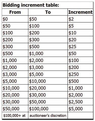 PLEASE BID IN U.S. DOLLARS ONLY (NO CENTS) AND FOLLOW THE INCREMENT TABLE IN THIS CATALOG. PLEASE TYPE OR PRINT CLEARLY IN BLACK OR DARK BLUE INK.