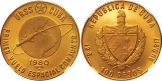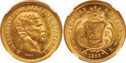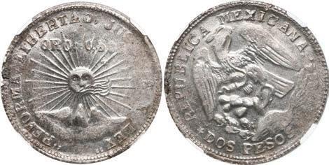 Several very important collections are featured in World Coins including the Jorge Becerra Collection of Colombian Colonial Coins, the JEAS Collection of Gold Coins of Independent Colombia, Part I of the Emilio M. Ortiz Collection of Cuban Gold Coins, and Part I of the John M. O’Brien Reference Collection of Peruvian Coins. Collectors of classic Chinese coin rarities should watch for Lots 870 through 911 for numerous vintage Chinese coins from the imperial and republican eras with particular highlights being the eye-appealing Tsao-Kun military attire silver dollar of 1923 graded PCGS MS 64 (Lot 906) and the ever-popular Kweichow Year 17 (1928) “Auto” dollar graded PCGS VF 30 (Lot 909). Spanish gold milled 8 escudos are well represented with several finest known and “top pop” pieces up for bidding including the gorgeous and finest known Seville, Spain, 1714 M gold 8 escudos graded NGC MS 65 (Lot 1429). Chile is another very strong area in this sale with many Spanish colonial and Republic gold and silver types available for the expert collector including the very rare Coquimbo 1828 TH “volcano” peso graded NGC AU 50 (Lot 830).
