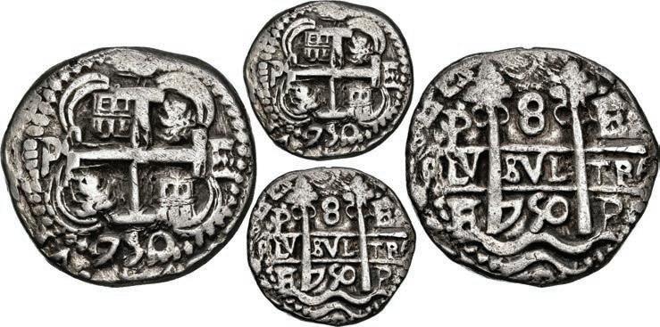 Mexico Silver Cobs has a small but nice group of rare “Early” and “Late” Series Charles-Joanna reales (Lots 448-451). Within Lima Silver Cobs, there are several Philip II rarities including a 4 reales of Assayer Rincón plated in Grunthal-Sellschopp’s The Coinage of Peru (Lot 457) along with many more choice pieces pedigreed to the Luis R. Ponte Collection.