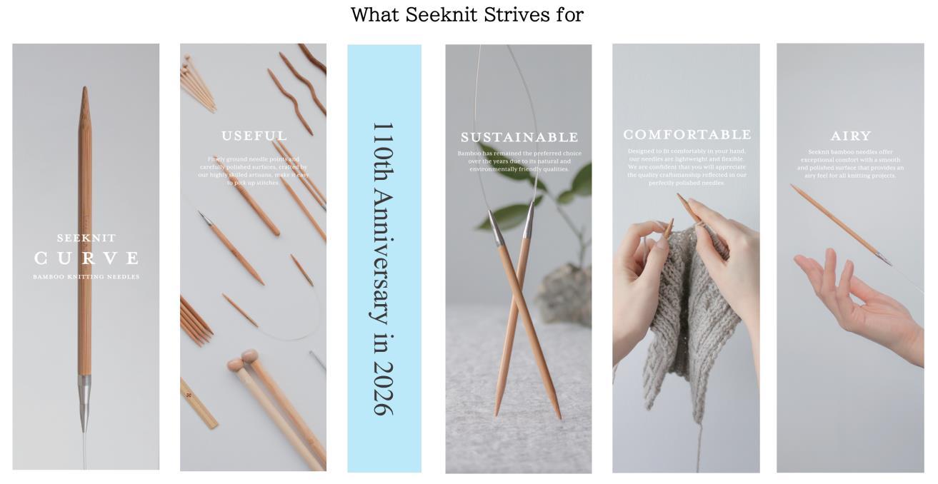 Wecarefullycrafteachandeveryneedlewithheartfeltdedication,alwaysimaginingthefaces ofourcustomers. Weaspiretobeapartoffulfillingyourdreamsandcreatingmomentsof excitementandjoy.Thatisourwish andourgreatesthappiness atSeeknit. Lookingaheadtothenext100years,wewillcontinuetocrafteachneedlewithcareand dedicationsothatourbambooknittingneedlesremainlovedbycustomersaroundtheworld.