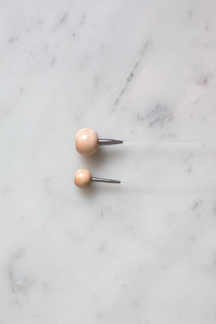 With prolonged use, the surface of the bamboo may deteriorate and the slippage of the yarn may worsen. We recommend applying carnauba wax. Place the needle on a flat surface, hold the solid carnauba wax in your hand, rub the surface of the needle with the wax and polish with a dry cloth. This will improve the smoothness of the yarn and the luster of the bamboo.