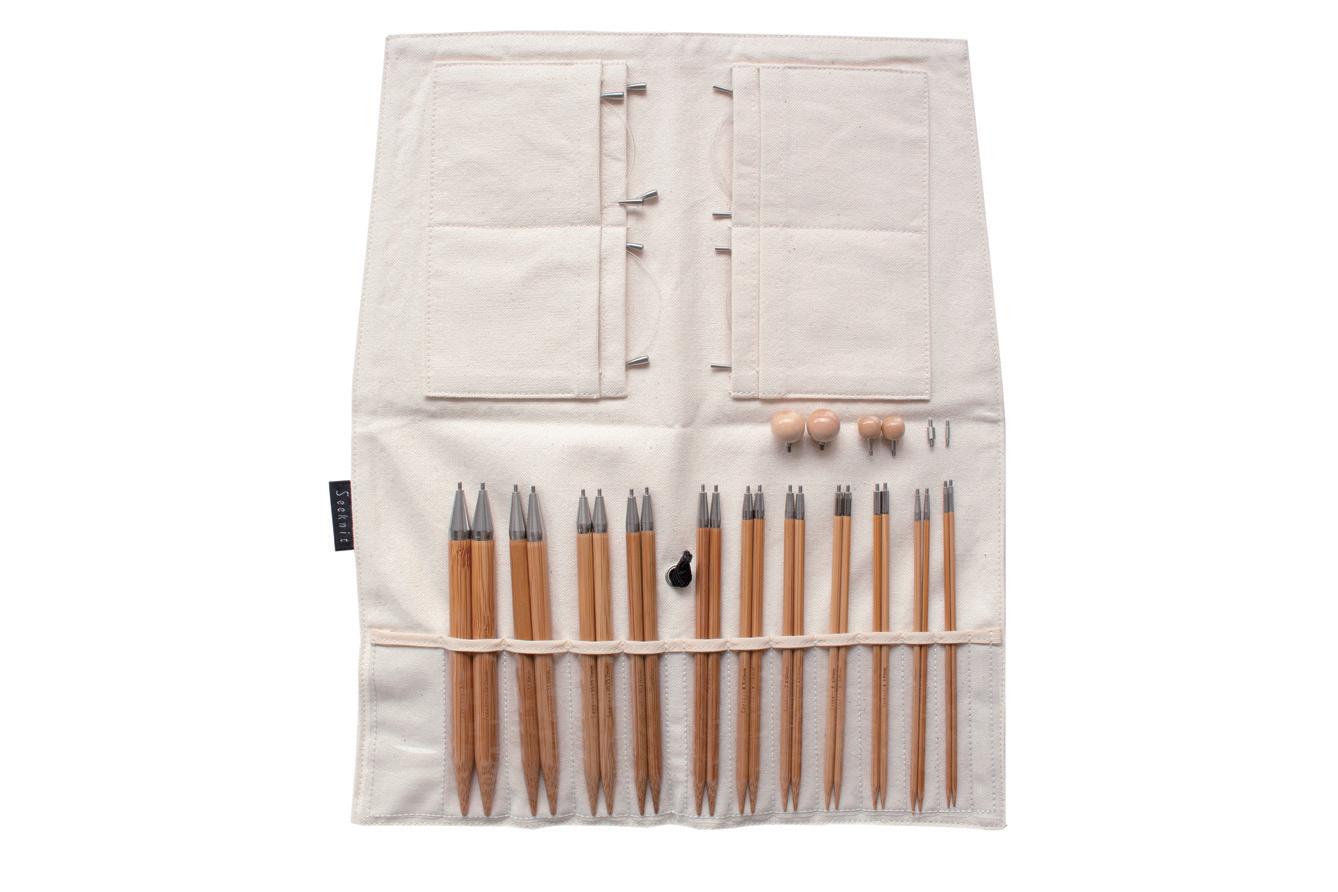 Koshitsu are bamboo needles with brown color. After going through our unique high temperature and pressure treatment, Koshitsu needles are carefully polished with natural plant wax. This special treatment gives the bamboo extra durability. It also prevents the needles from warping. The surface treatment gives a comfortable and smooth movement of the yarn and a warm touch.