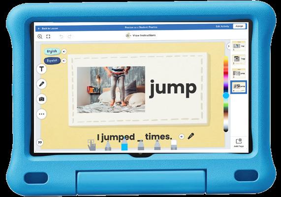Students explore new vocabulary in developmentally appropriate ways. Built-in scaffolds support students to explore inputs, practice oral language production, and use vocabulary in complete sentences.