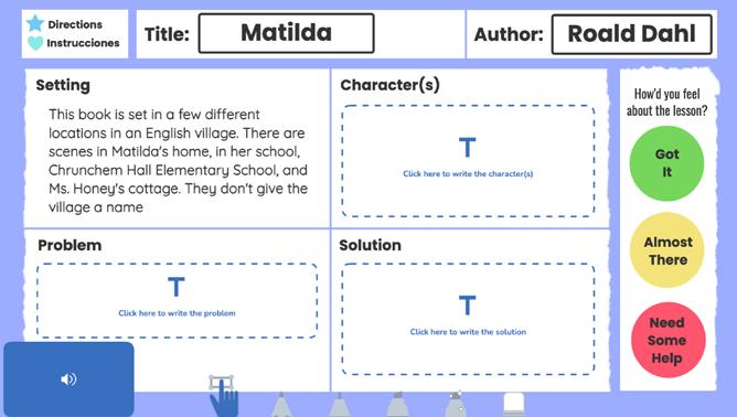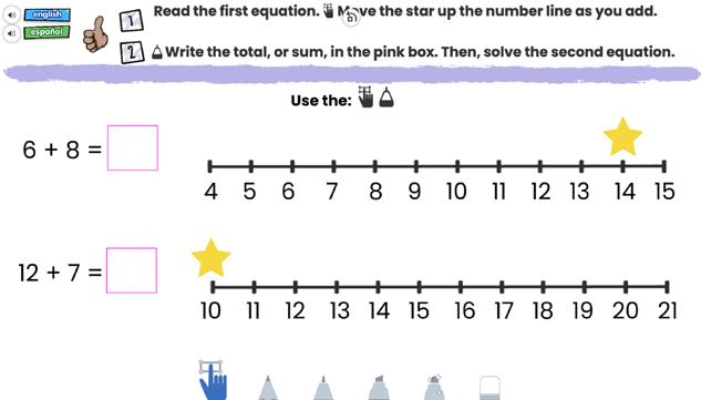Make content accessible by adding audio directions, supporting visuals, or record videos to model and demo tasks. Plus! 600+ lessons in Spanish, lessons to build common English vocabulary, and a full English Language Development Solution* available to add-on.