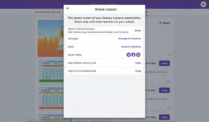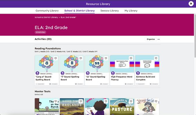 The Seesaw Library is filled with PreK-6 lessons to support core instruction, acceleration, intervention and differentiated learning. Ready-to-teach lessons built with Seesaw’s engaging multimodal learning tools help educators deliver evidence-based, standardsaligned instruction. Lessons include everything educators need to teach with confidence, including: