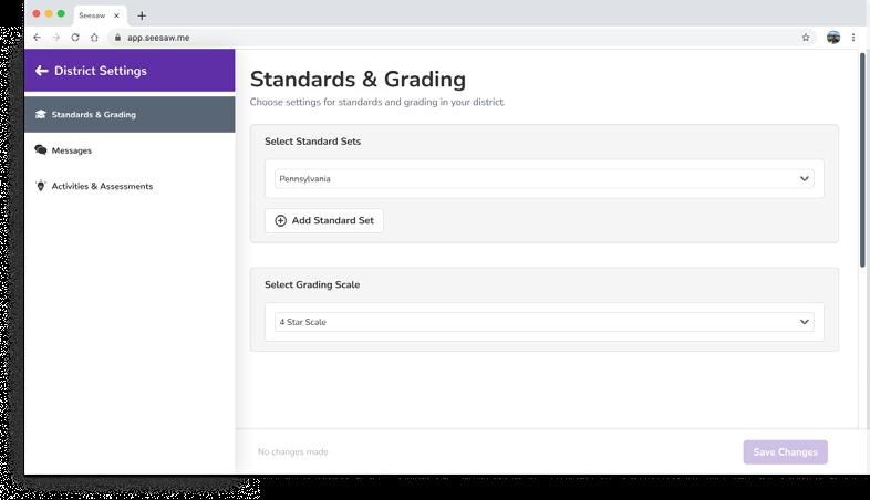 Now users will only see the standards and rating options set by the district throughout Seesaw.
