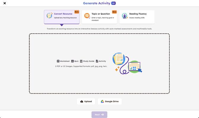 Turns insights into action with AI generated activities and auto-graded assessments