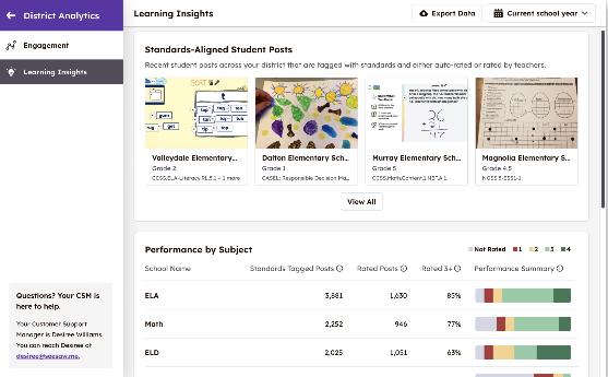• Provide instructional leaders with actionable insights to make data-based decisions district-wide in the Learning Insights Dashboard
