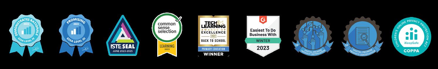 • Awarded International Society for Technology in Education (ISTE) Seal of Alignment, demonstrating powerful instructional tools that deliver a high-quality learning experience aligned with leading digital age standards