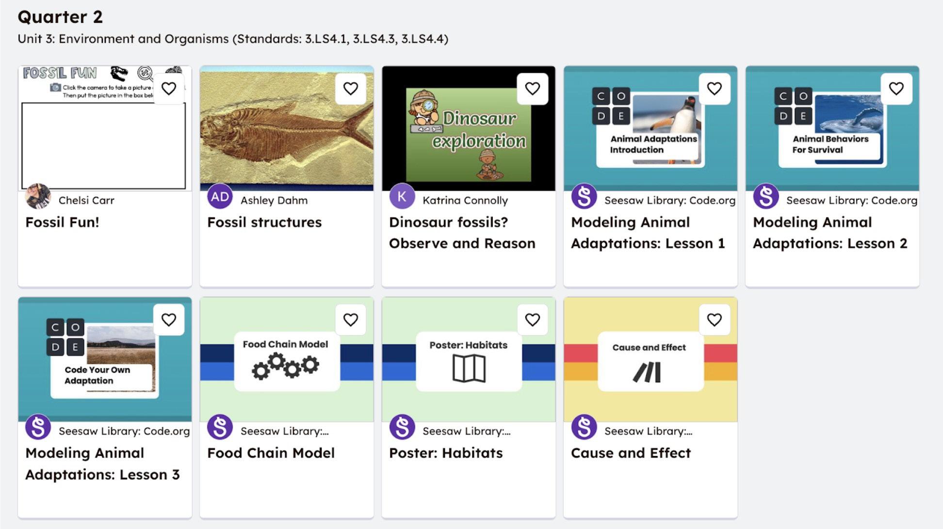 When you feel happy with the alignment, the Seesaw team will organize those lessons in the School & District Library, all within Seesaw! We can even plug our content directly into your curriculum documents if you prefer.