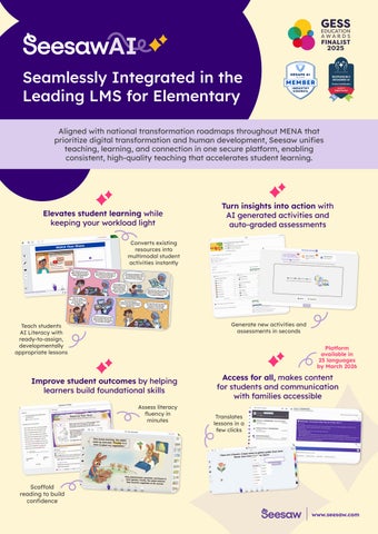Aligned with national transformation roadmaps throughout MENA that prioritize digital transformation and human development, Seesaw unifies teaching, learning, and connection in one secure platform, enabling consistent, high-quality teaching that accelerates student learning.