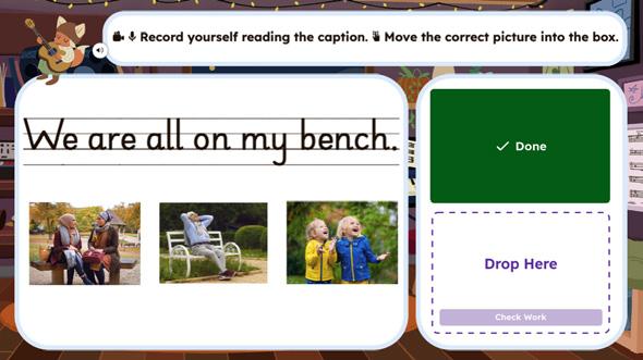 Choral whole-class reading practice and ‘Read-with-Me’ activities provide a scaffold towards independent reading fluency. Children practise sorting words from the stories by alternative spellings while building reading comprehension skills powered by Formative Assessment Drag and Drop.