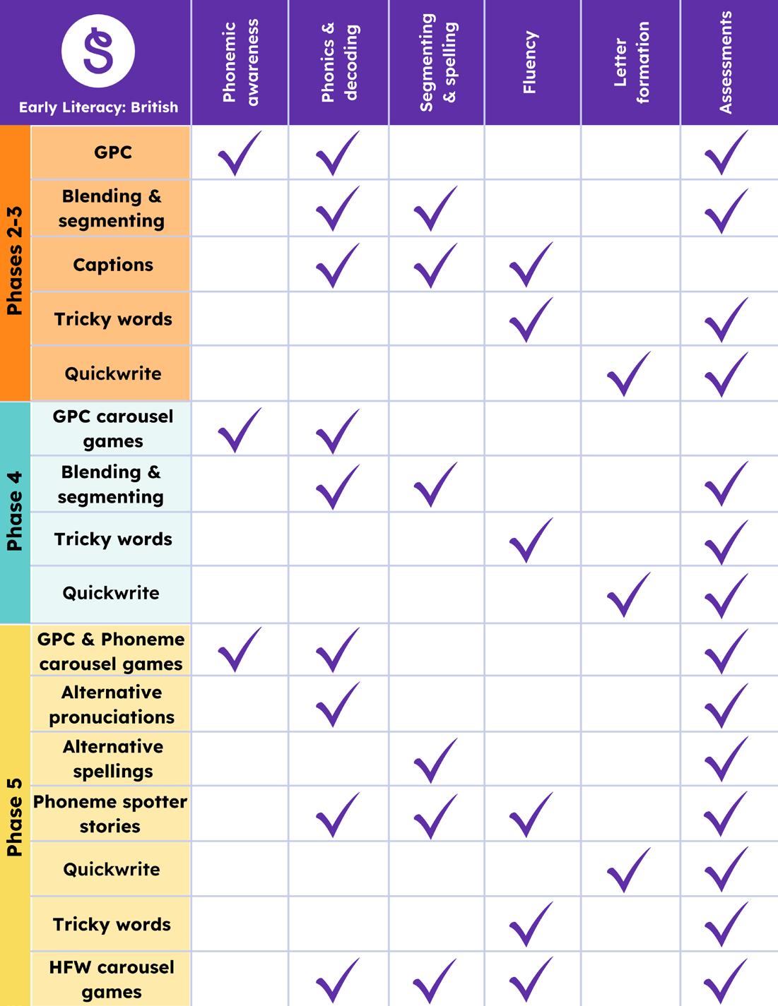 Assessments help educators track pupils’ progress and the development of each target skill. Pupil data can be used to differentiate instruction in preparation for the Year 1 Phonics Screen Check.