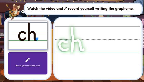 Embedded voice and video frames in each activity allow children to easily oral rehearsals of each grapheme.