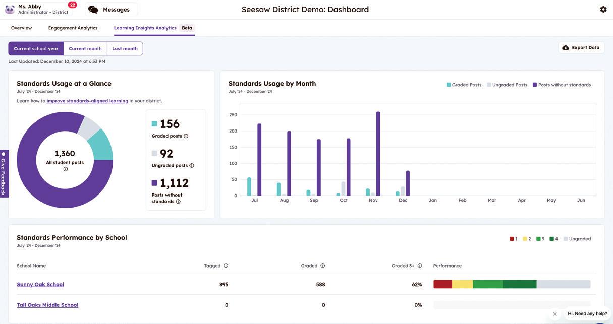 Seesaw’s leadership dashboards turn everyday classroom activity into actionable insight–without adding reporting burden. Engagement, learning evidence, and instructional consistency are visible at every level to support confident,