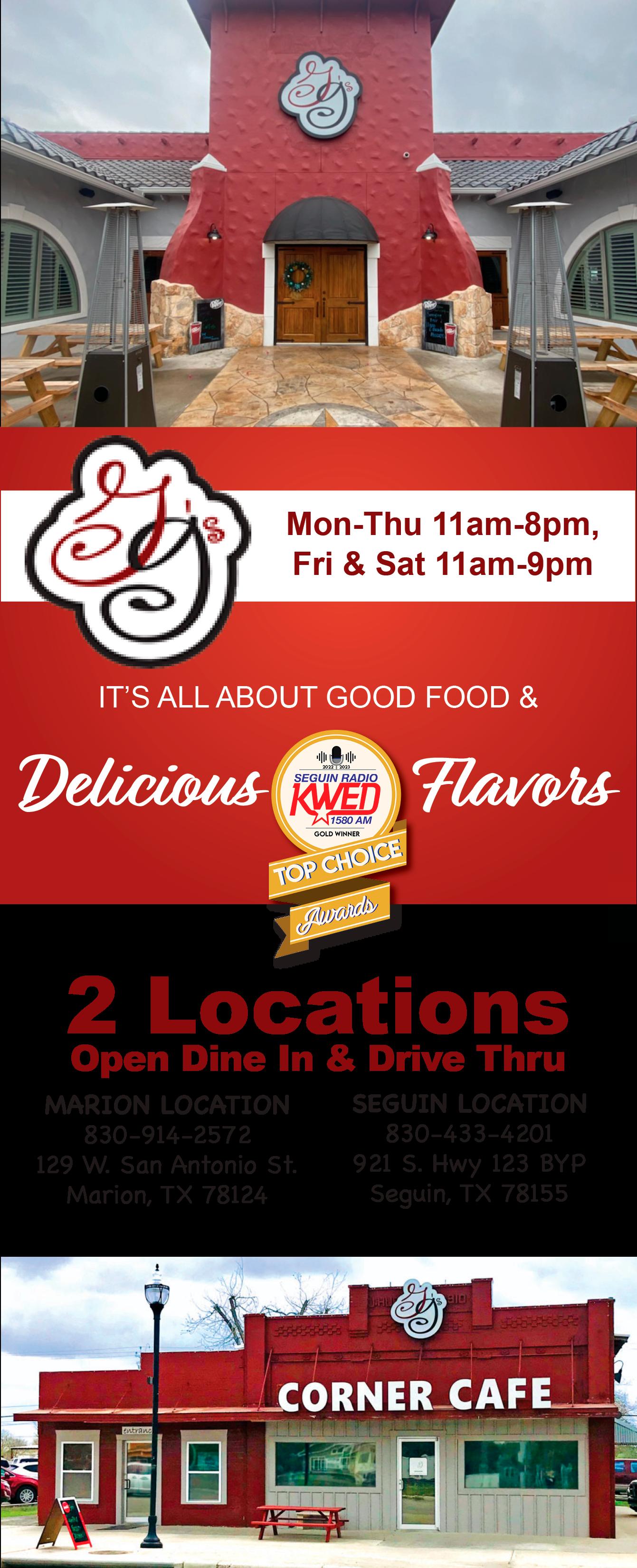What’s What’s What’s Cooking Cooking Cooking IF you DON’T feel like cooking tonight, cure your case of WITH... GERONIMO COFFEE HAUS signature coffee & ice cream scoops signature coffee & ice cream scoops 830.243.2495 i geronimocoffeehaus@gmail.com 6811 N. State hwy 123, Seguin 830.243.2495 i geronimocoffeehaus@gmail.com 6811 N. State hwy 123, Seguin GRAND BUFFET Early Bird Senior Special! 60 years and older LUNCH $8.99 Mon-Fri, 2pm - 3:30pm DINNER $10.99 Mon-Thu, 3:31pm 5:00pm 1463 E. Court St. 830-379-8008 Limited time dine in ONLY 2 Locations Open Dine In & Drive Thru MARION LOCATION 830-914-2572 129 W. San Antonio St. Marion, TX 78124 SEGUIN LOCATION 830-433-4201 921 S. Hwy 123 BYP Seguin, TX 78155 Mon-Thu 11am-8pm, Fri & Sat 11am-9pm Seguin location NOW OPEN SUNDAYS 11am-3pm